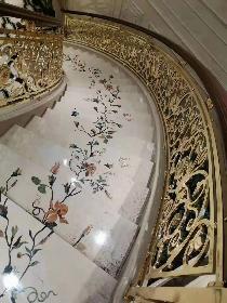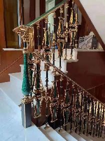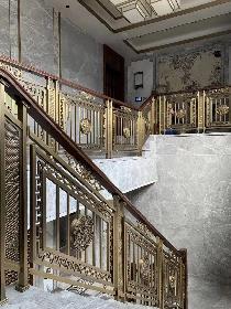 別墅銅藝樓梯-銅樓梯欄桿色彩變化:銅欄桿會隨著時間的推移逐漸氧化,形成獨(dú)特的綠色或青銅色,增添了古樸 ..
